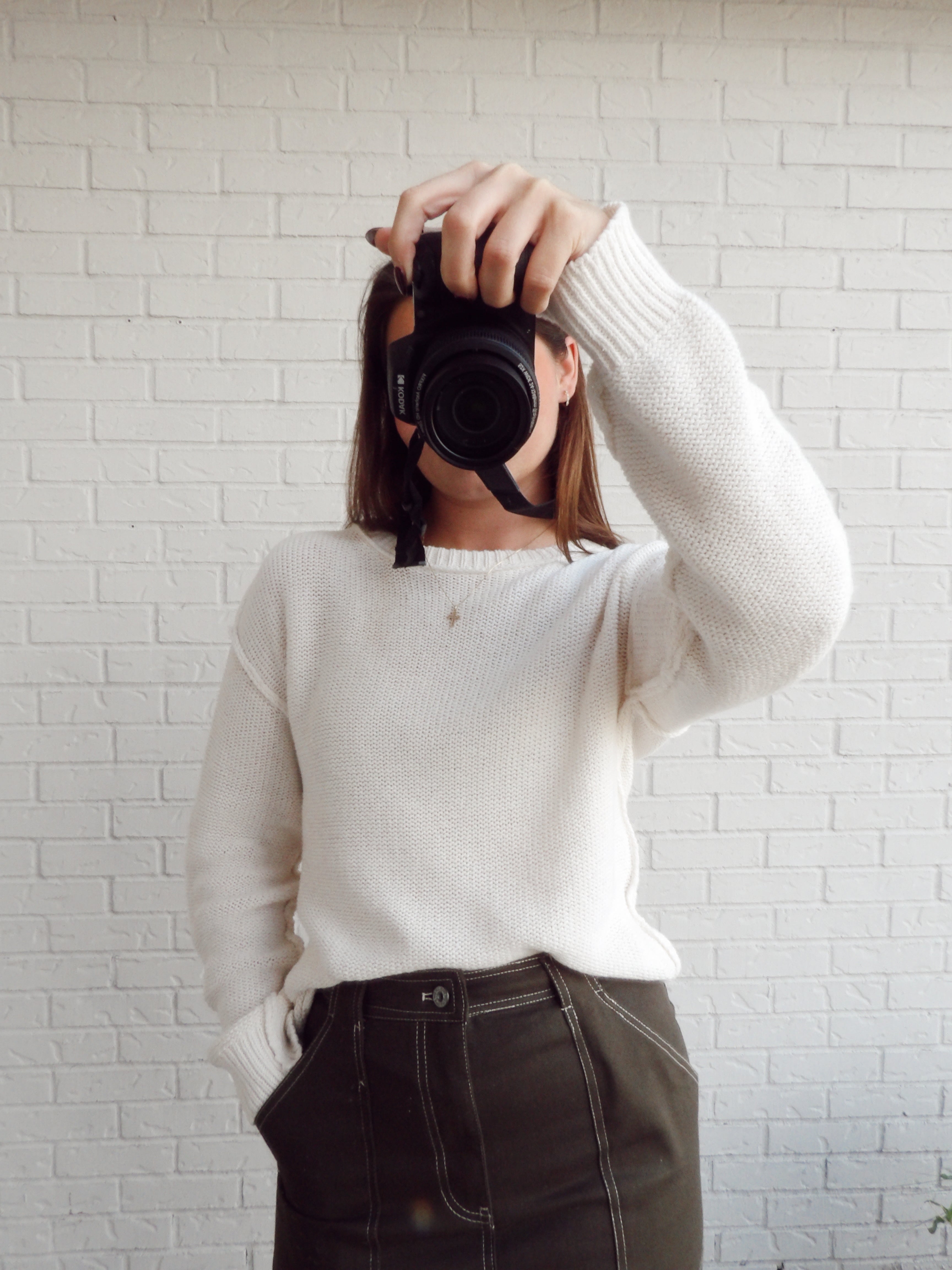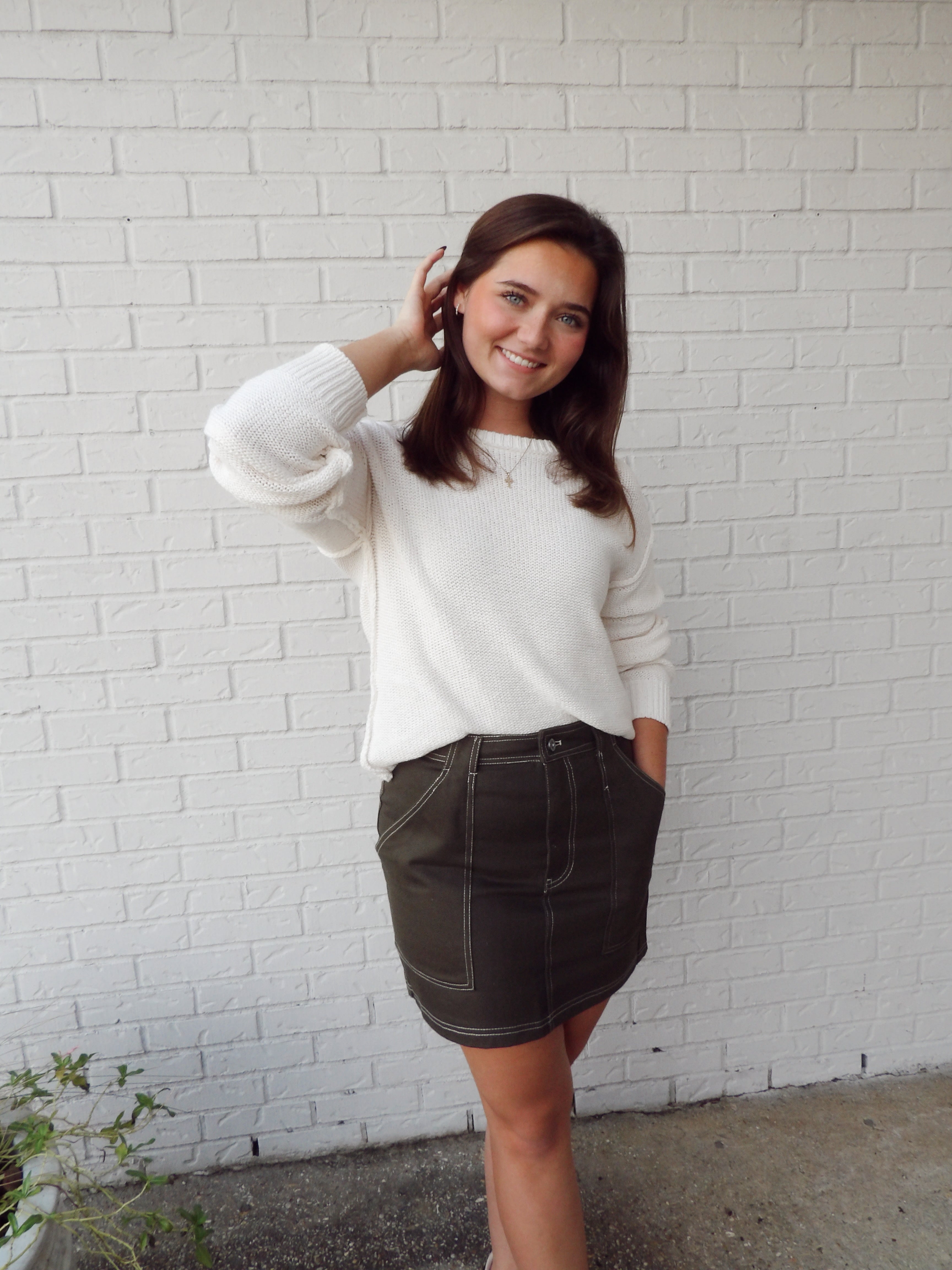 Olive skirt with white stitching